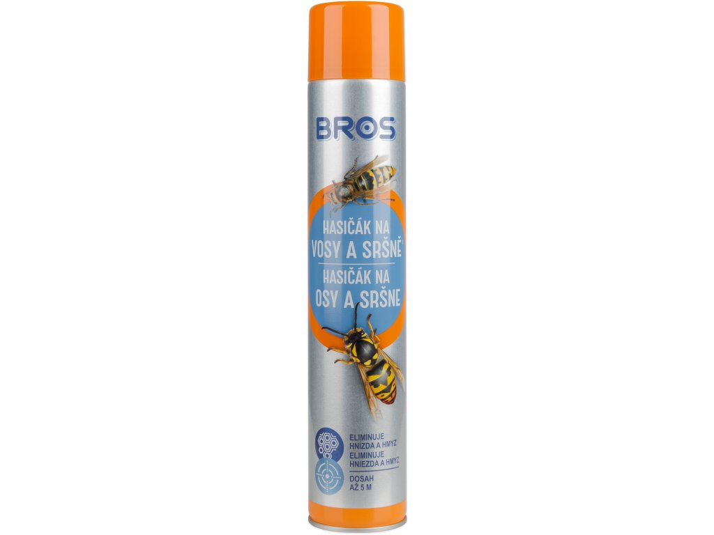 BROS Hasičák je aerosolový přípravek určený pro hubení vos a sršňů i jejich hnízd. Má speciální uzávěr umožňující bezpečný dostřik a cílenou aplikaci až do vzdálenosti 5 m. Působí kontaktně a je ihned připraven k použití – není třeba žádného míchání ani příprav.✅